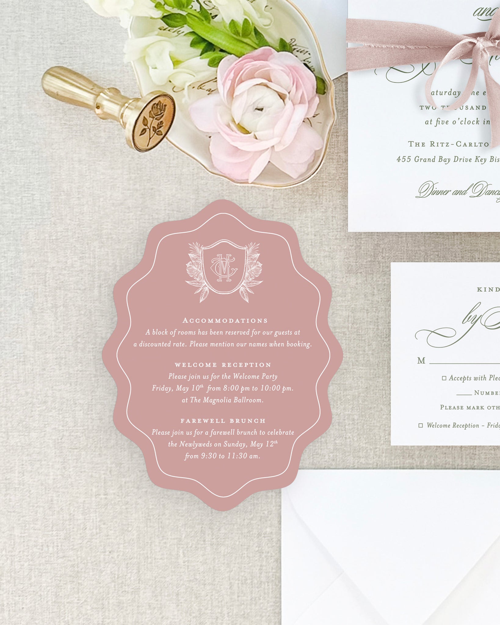 Give your wedding invitations that couture, fine-art finish with our die-cut shape card upgrade — the perfect way to elevate any semi-custom design into something truly one-of-a-kind.
